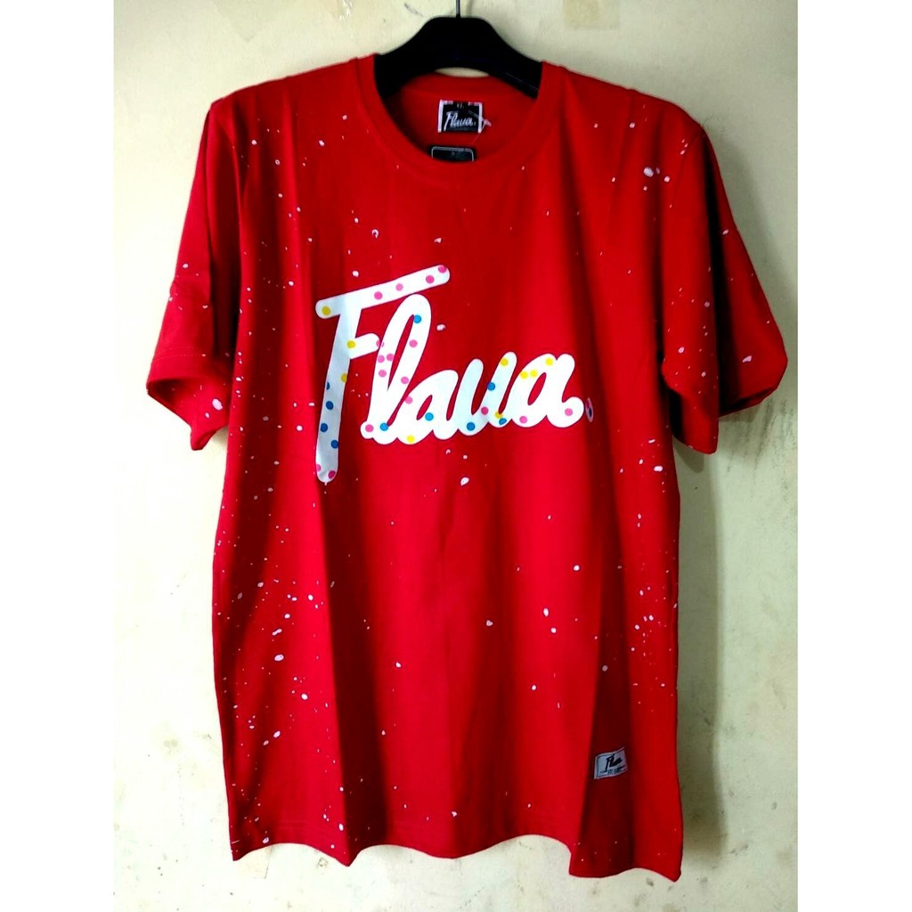 kaos distro flava merah lengan pendek Shopee Indonesia . Sumber Gambar : shopee.co.id
