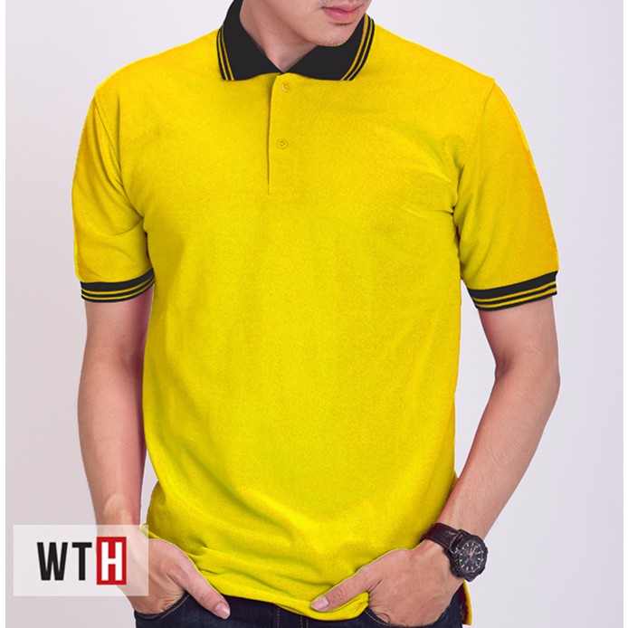 KAOS POLO SHIRT KUNING STABILO KERAH HITAM WHAT THE HEAVEN . Sumber Gambar : shopee.co.id